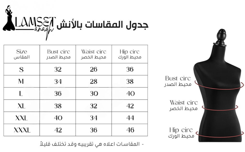 جدول المقاسات