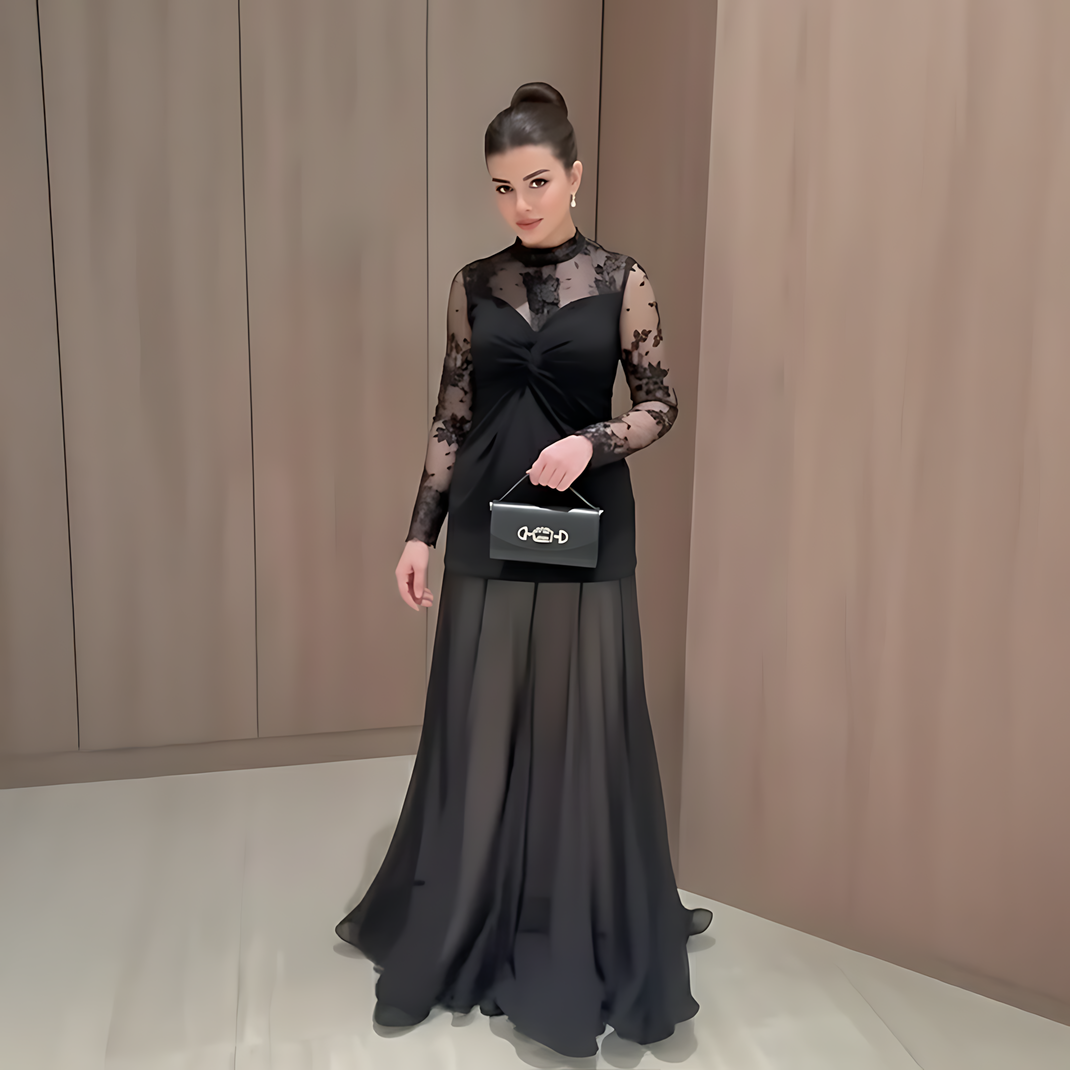 هذا الفستان ليس مجرد قطعة سهرة، بل اختيار يعكس ذوقًا راقيًا واهتمامًا بالتفاصيل. ولمن تبحث عن فستان اسود دانتيل طويل يجمع بين الأنوثة الكلاسيكية والحضور الهادئ، يمنحك هذا التصميم إطلالة متكاملة تليق بكل مناسبة خاصة.