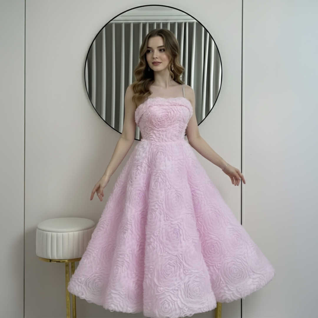 اختاري فستان بريلي الوردي لتظهري بإطلالة أنثوية فاخرة تجمع بين الرقة والتميز. تصميمه الراقي وخامته المميزة يجعلان منه قطعة أساسية لكل امرأة تبحث عن إطلالة لا تُنسى في مناسباتها الخاصة