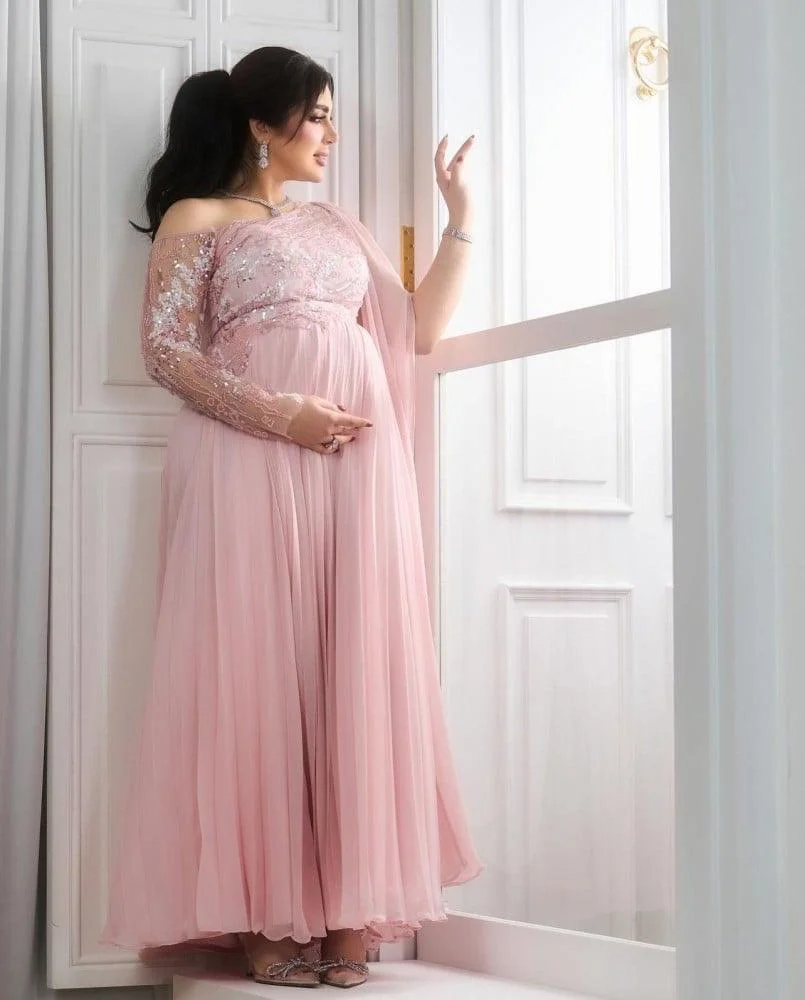 مواصفات فستان حوامل ناعم وردي فاتح