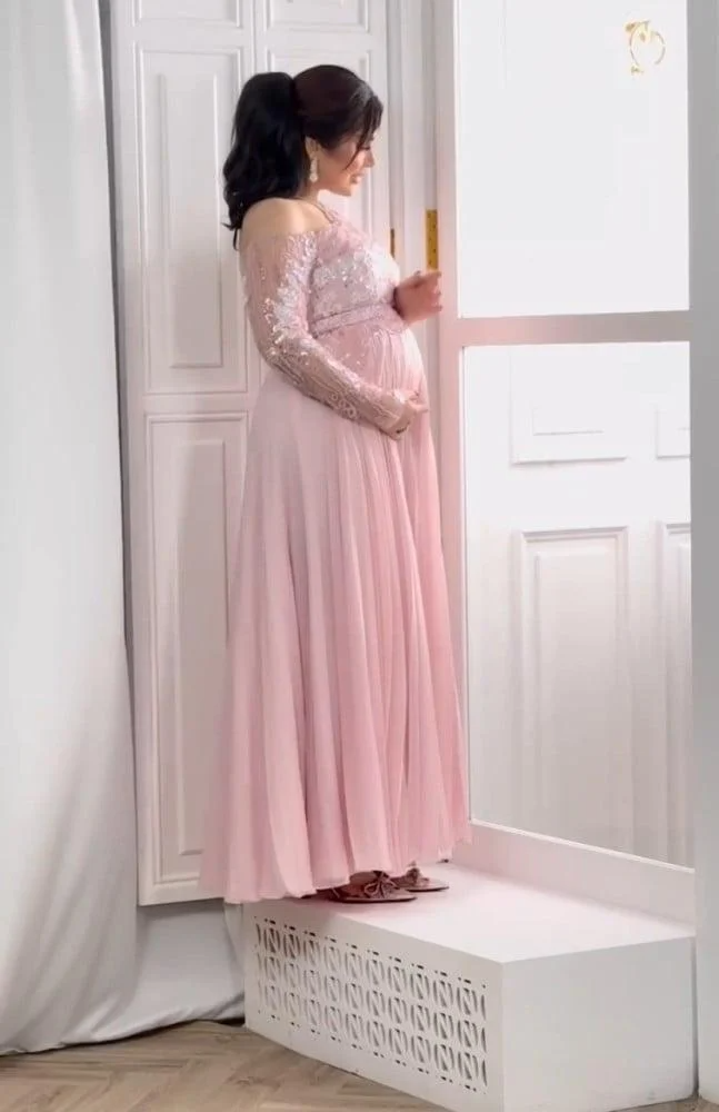 تصميم ناعم بلون وردي فاتح يمنح إطلالة رقيقة ومفعمة بالأنوثة تناسب مراحل الحمل المختلفة. يتميز الفستان بقصة انسيابية مريحة تمنح مساحة كافية للبطن مع المحافظة على مظهر راقٍ وهادئ. خيار مثالي لمن تبحث عن فستان حوامل ناعم يجمع بين الأناقة والراحة في آنٍ واحد.