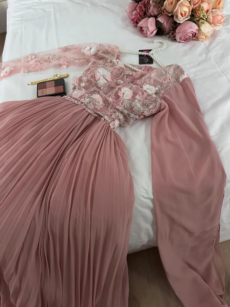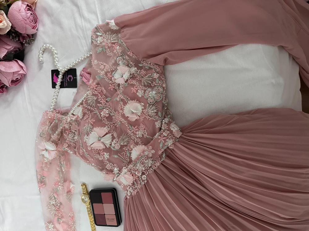 اللون: وردي فاتح ناعم يضفي إشراقة ونعومة للإطلالة