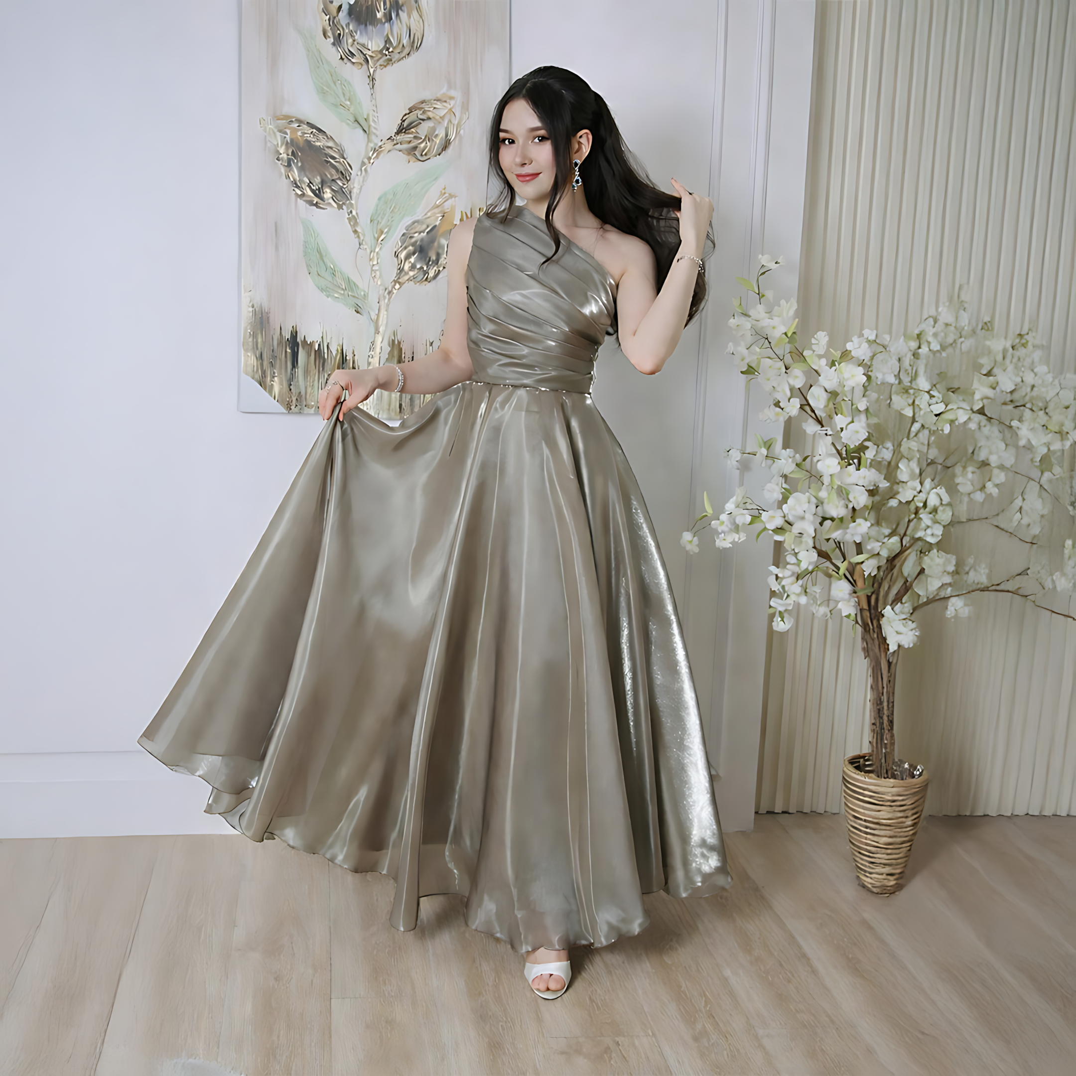 تصميم أنيق يعكس فخامة السهرات بلمسة لامعة هادئة، حيث يعتمد هذا الفستان على قماش لامع بتدرج ناعم يمنح الإطلالة حضورًا راقيًا دون مبالغة. يجمع التصميم بين القصة الطويلة والانسيابية الواضحة، ليكون خيارًا مناسبًا للمناسبات الخاصة، ويلائم من تبحث عن فستان سهرة لامع بإطلالة أنثوية متزنة تجمع بين البساطة والفخامة.