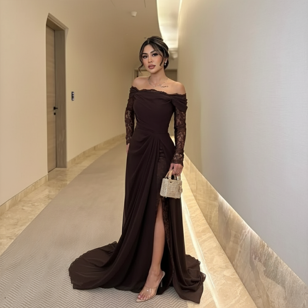 تألقي في كل مناسبة مع فستان ناعم بني الغامق الذي يجمع بين الرقي والبساطة في تصميم أنيق يعكس أنوثتك بثقة. هذا الفستان مثالي للسهرات والمناسبات الخاصة، حيث يمنحك حضورًا فخمًا وإطلالة ساحرة تلفت الأنظار من اللحظة الأولى بفضل قصّته المتقنة ولونه العميق الجذاب